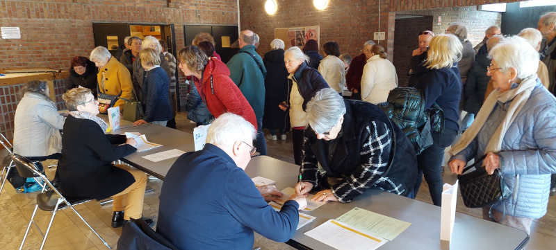 Face à un afflux de près de 400 personnes, les bénévoles affichent une organisation sans faille à tous les niveaux : accueil et émargement, mise en place de la salle, présentation de travaux de différents ateliers, organisation visuelle de l'AG, goûter...
