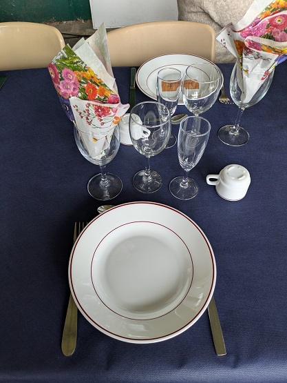 Dès 9h30, les petites mains et les gros bras de notre association étaient au travail : installation et mise en place des tables et chaises, de la déco, préparation des mises en bouche...